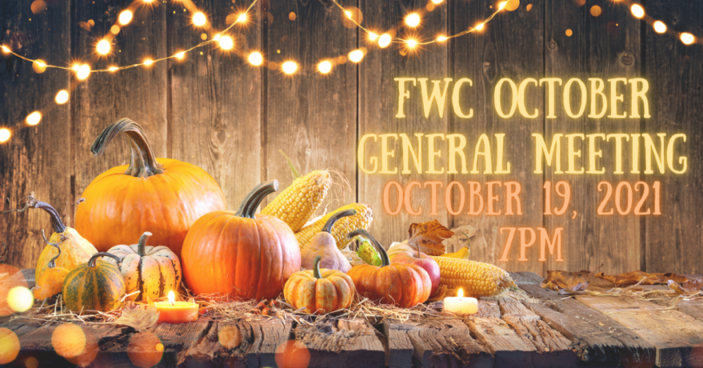As usual, the FWC will provide refreshments & there will be a short business meeting before we begin our craft class. Please make sure to respond to the EVITE when it is mailed out to insure we have enough pumpkins for everyone to participate.